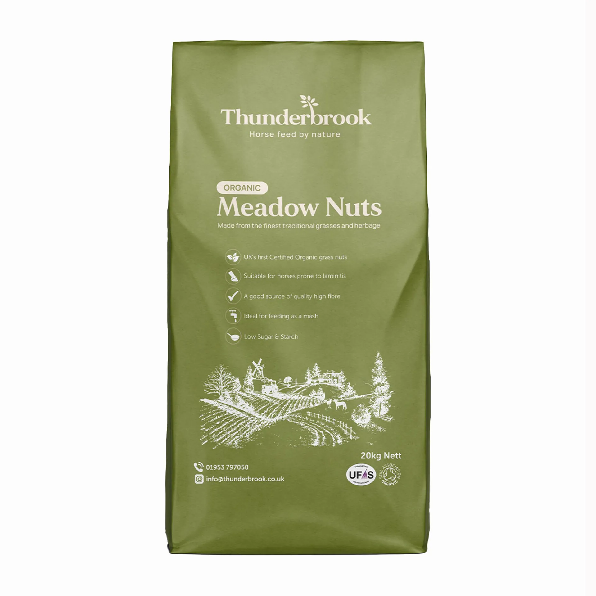 The Thunderbrook Organic Meadow Nuts are produced from meadows that consist of traditional grasses offering high fibre, low sugar, and starch nuts, making them ideal for horses or ponies who are prone to laminitis.
