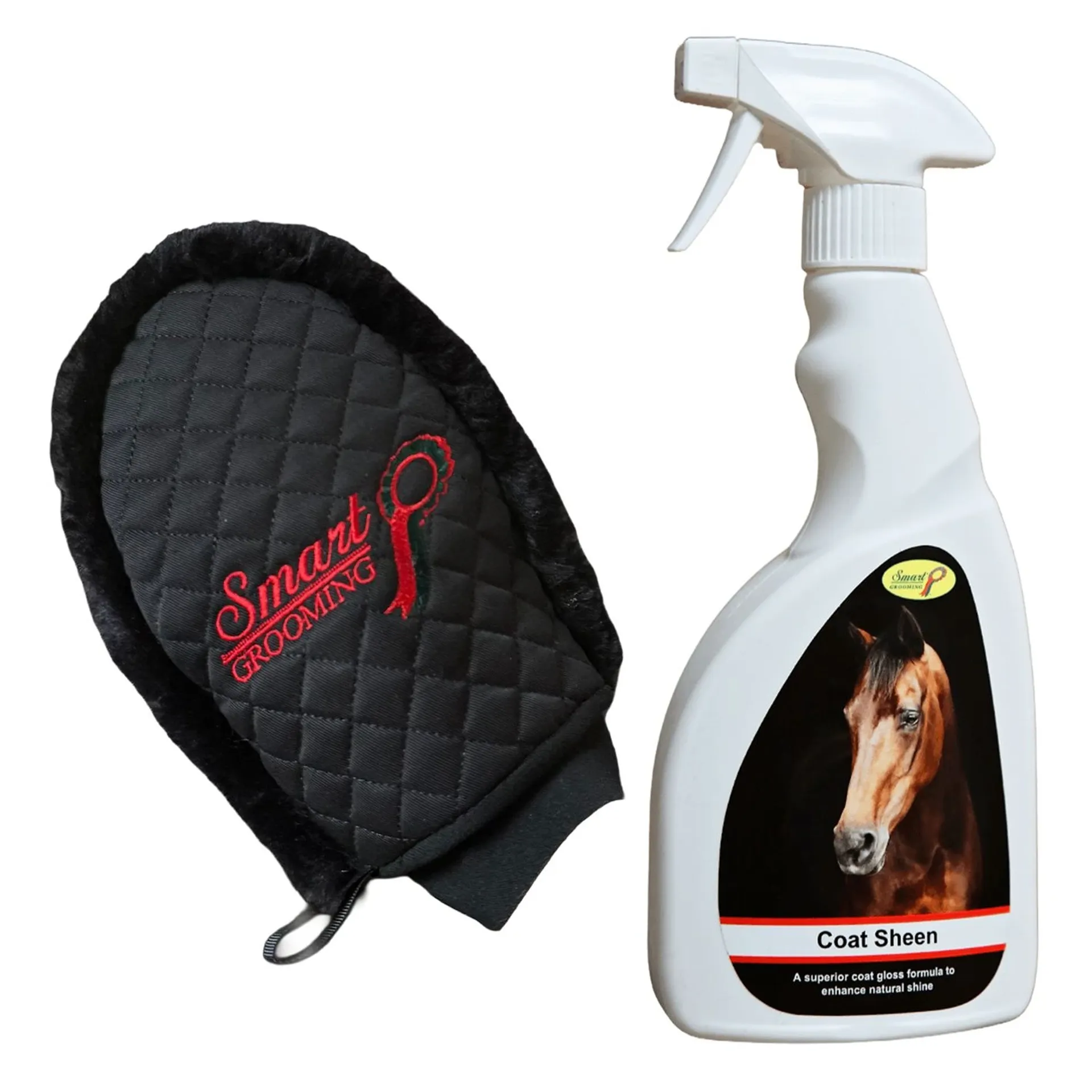 The Smart Grooming Coat Sheen and Quilted Mitt Bundle is the perfect pair to choose keeping your horses coat in the ultimate condition and shine, no matter the coat type.
