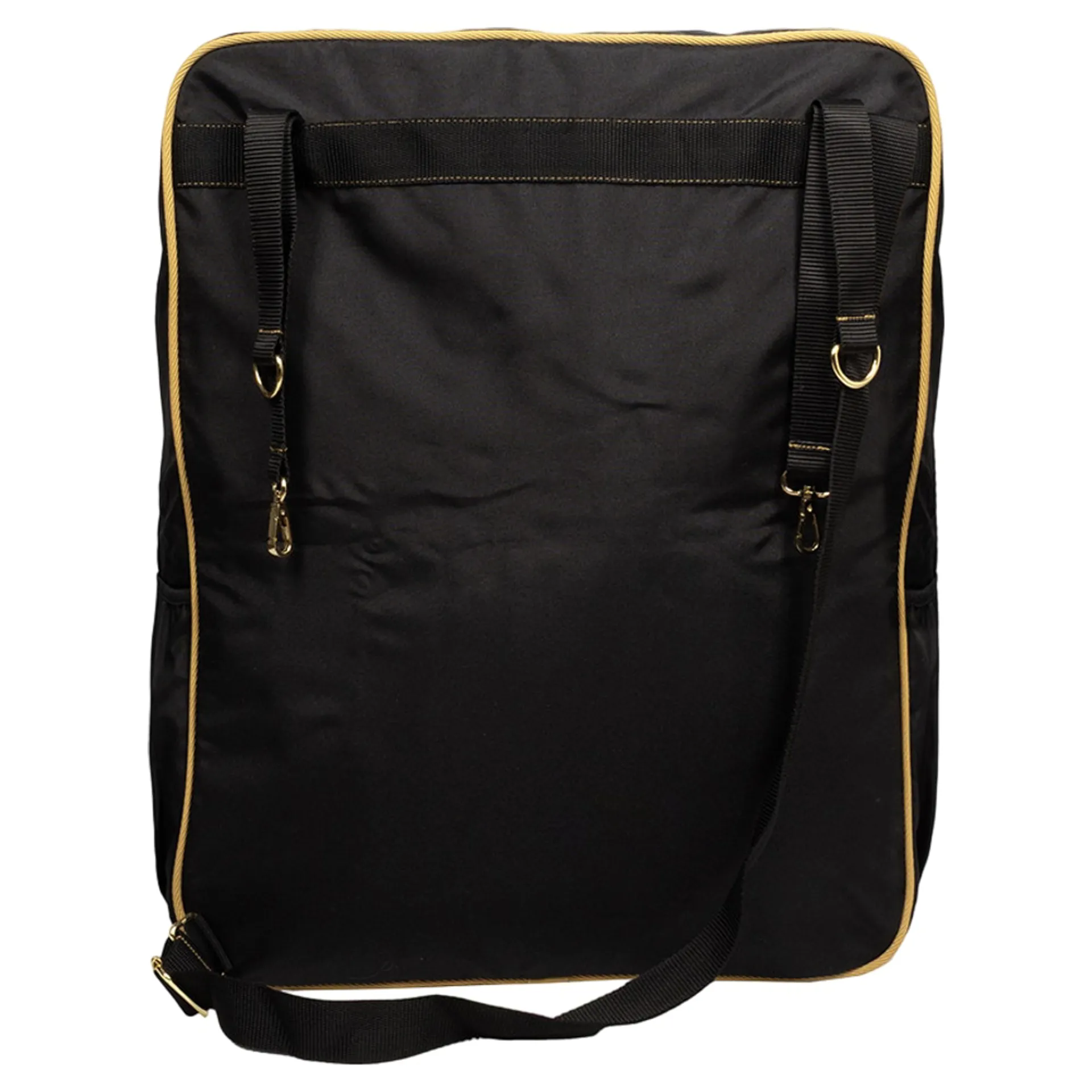 The Supreme Products Pro Groom Stable Bag is a large multi-purpose bag designed to hang on stable bars, making it ideal for stay-away shows or yards with limited space. It keeps your riding hat, boots, summer sheets, and grooming accessories clean and off the floor. Finished with leather and gold detailing, it matches the rest of the Supreme Products luggage collection.