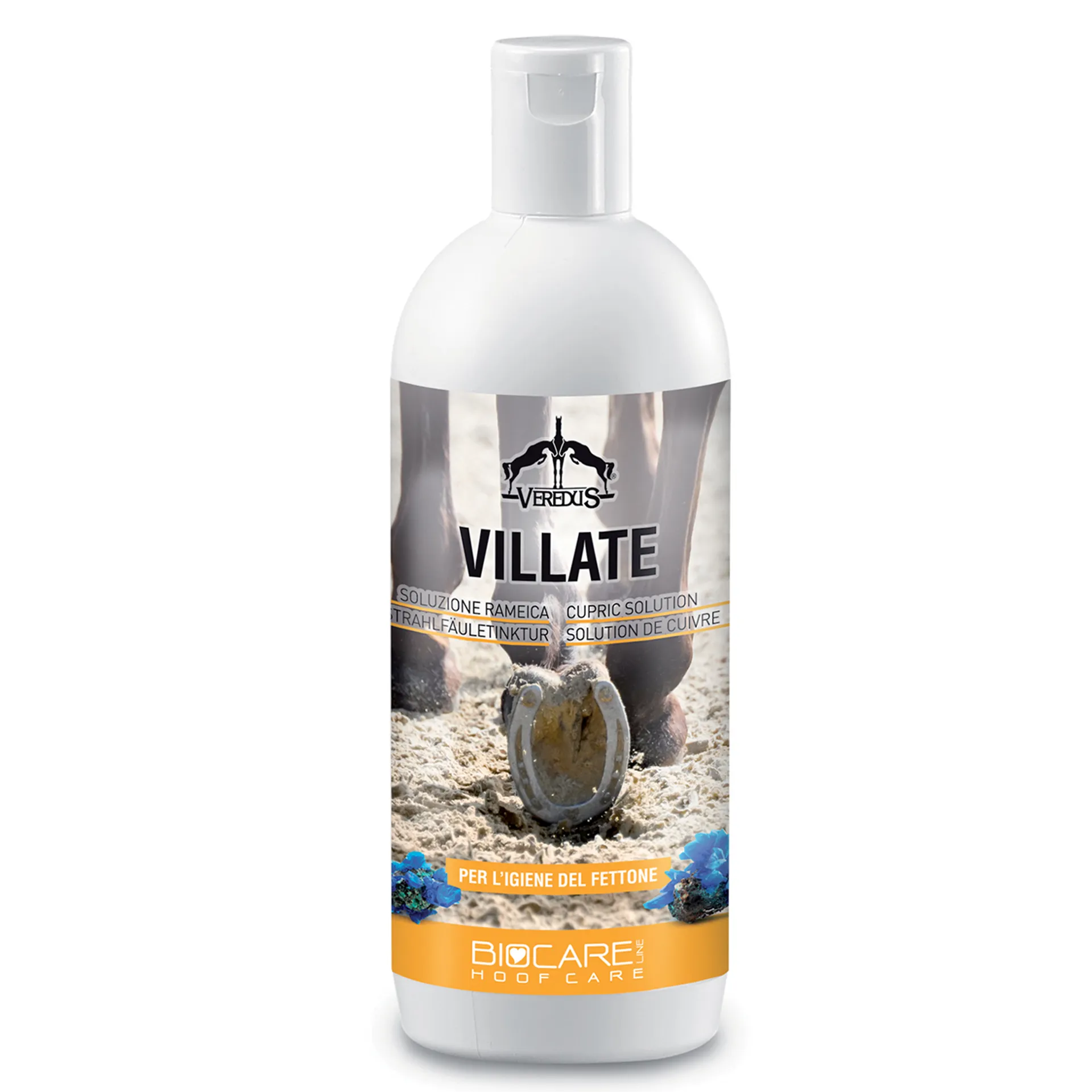 Maintain hoof hygiene with the Veredus Villate Cupric Frog Solution, a specialised lotion designed to clean and protect the frog while restoring it to optimal condition.