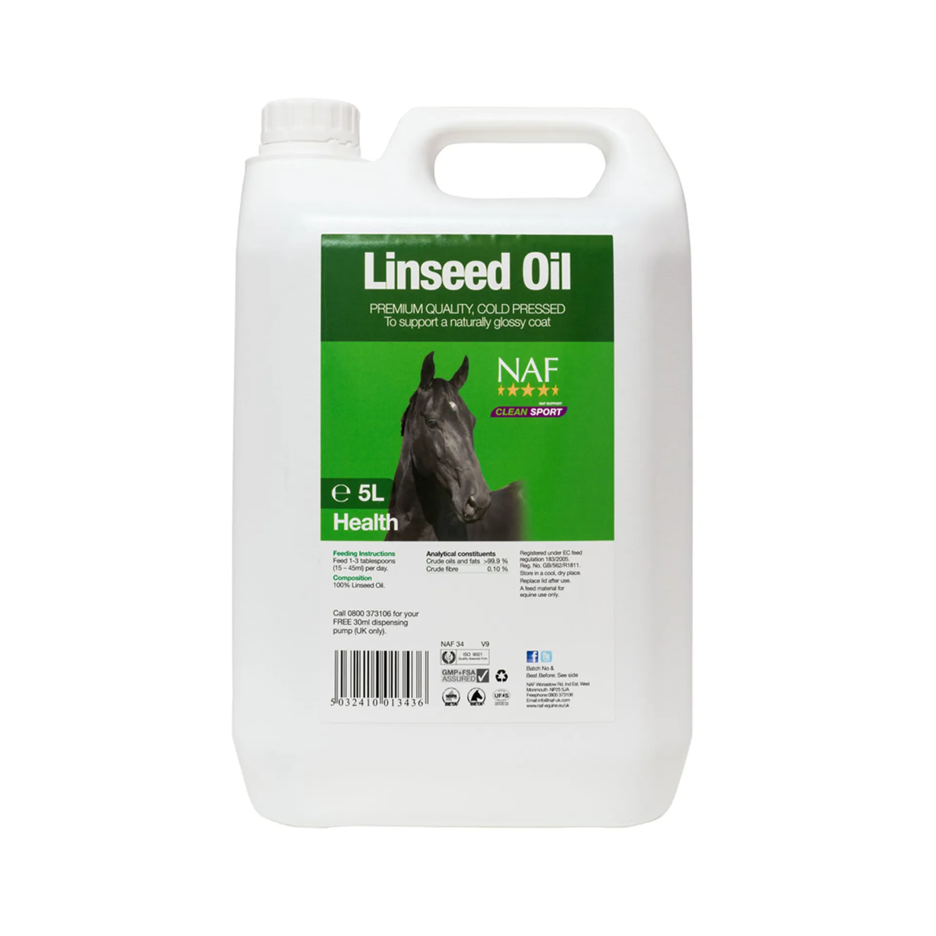 Supports general health and maintains a rich, natural shine. NAF Linseed Oil is rich in omega 3 fatty acids, (particularly linolenic acid and alpha-linoleic acid) giving your horse a fabulous shiny coat.