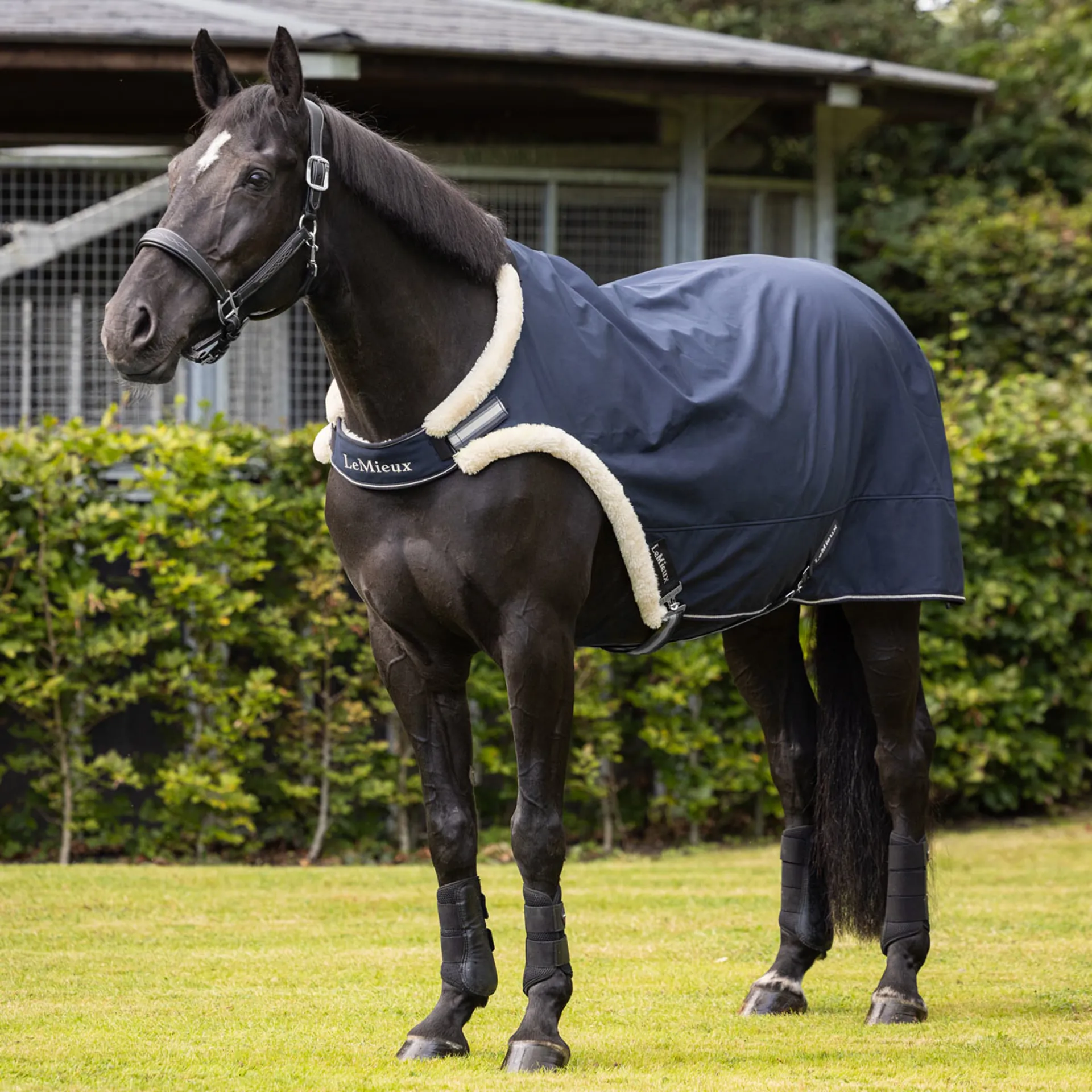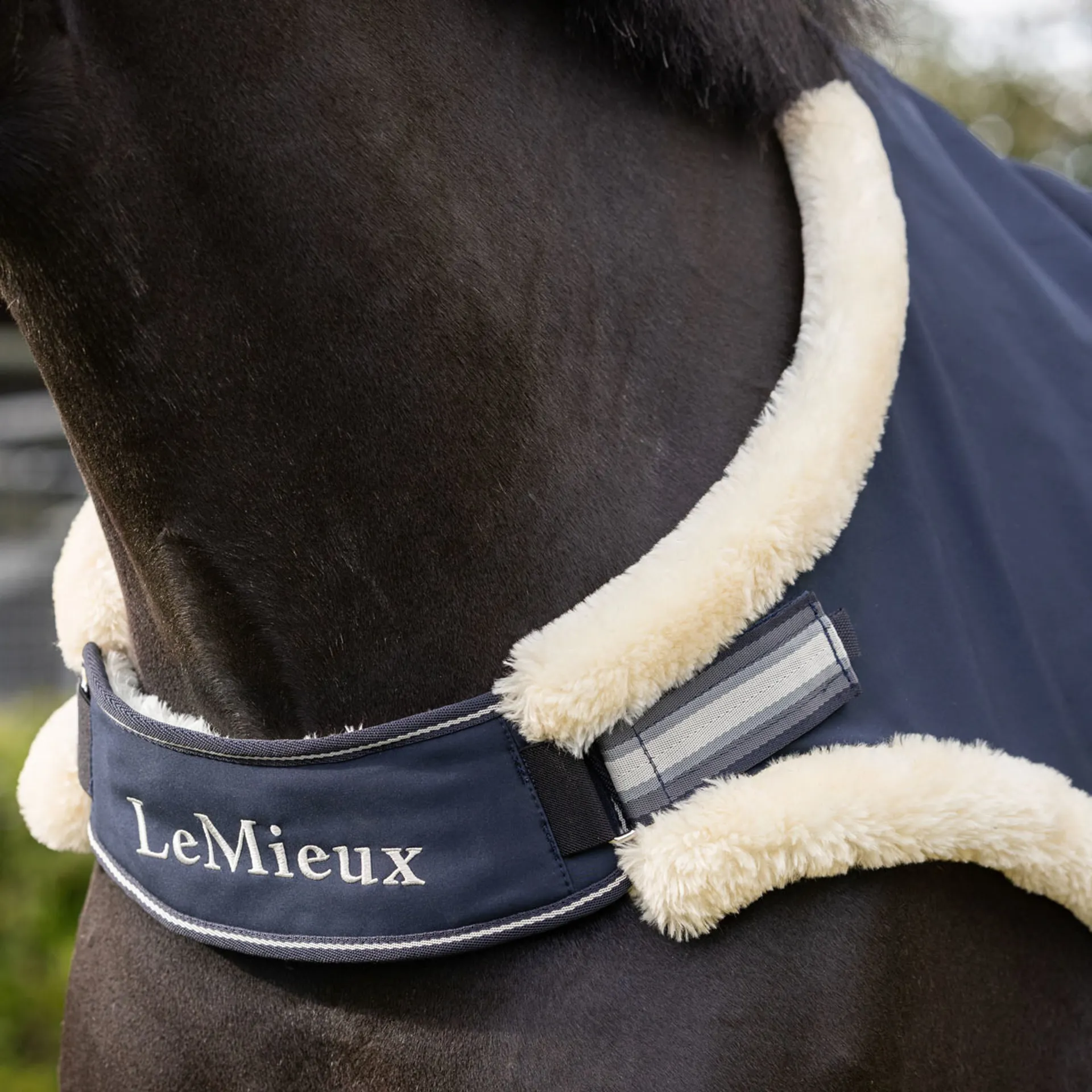 Great for sensitive-skinned horses or those who regularly use the horse walker. The LeMieux Walker Rug features a water resistant outer and is equipped with a luxurious faux sheepskin trim.
