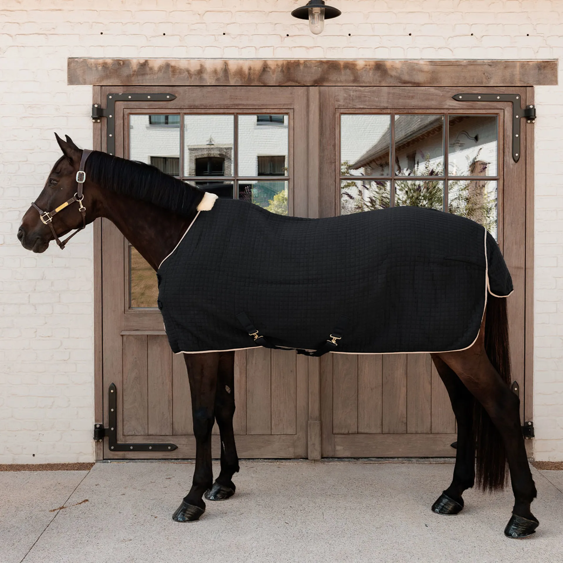 Ideal for use after schooling sessions or when travelling to shows and equestrian events, this Kentucky Cooler features a fabric blend that reflects the horse's natural heat, while allowing moisture to escape. This prevents overheating and accelerates drying time. Its quilted exterior is durable and hard-wearing, while remaining soft against your horse's skin.