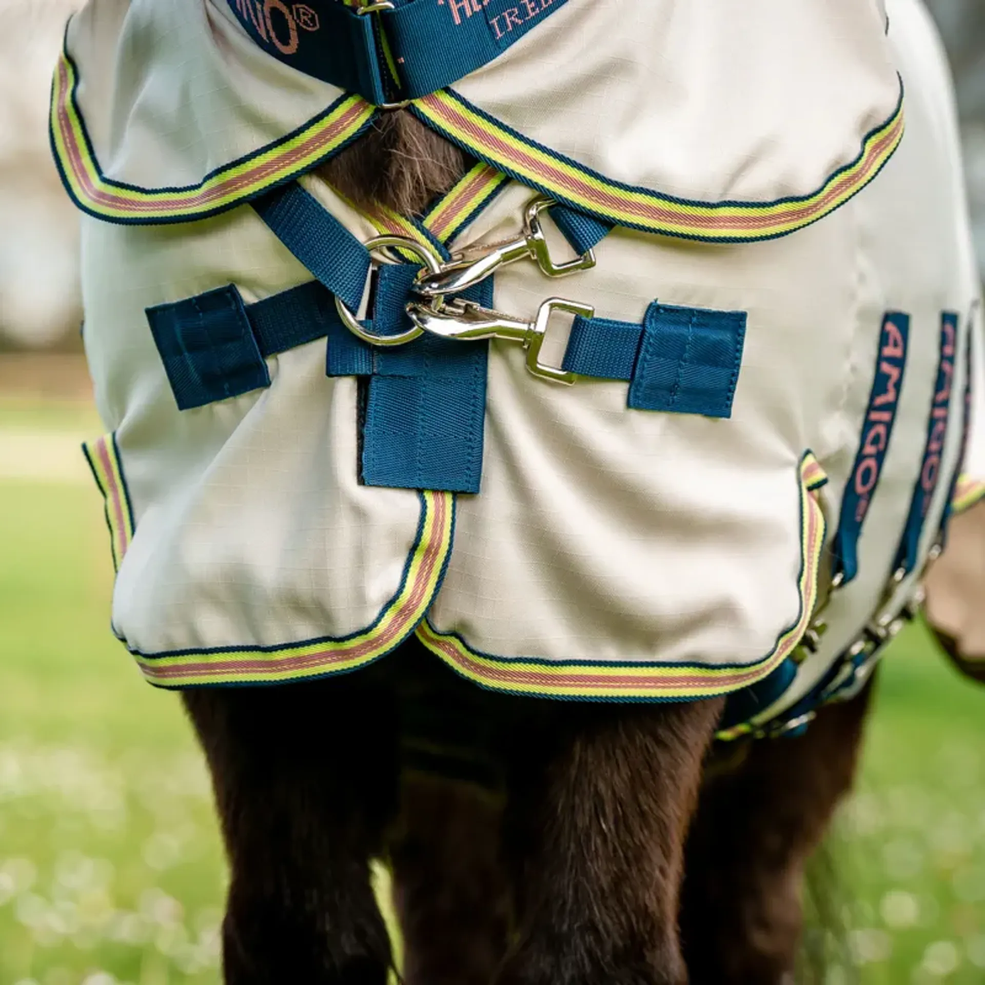 Question(s) asked regarding Amigo Ripstop Hoody Petite Combo Neck Fly Rug - Chalk/Navy/Rose