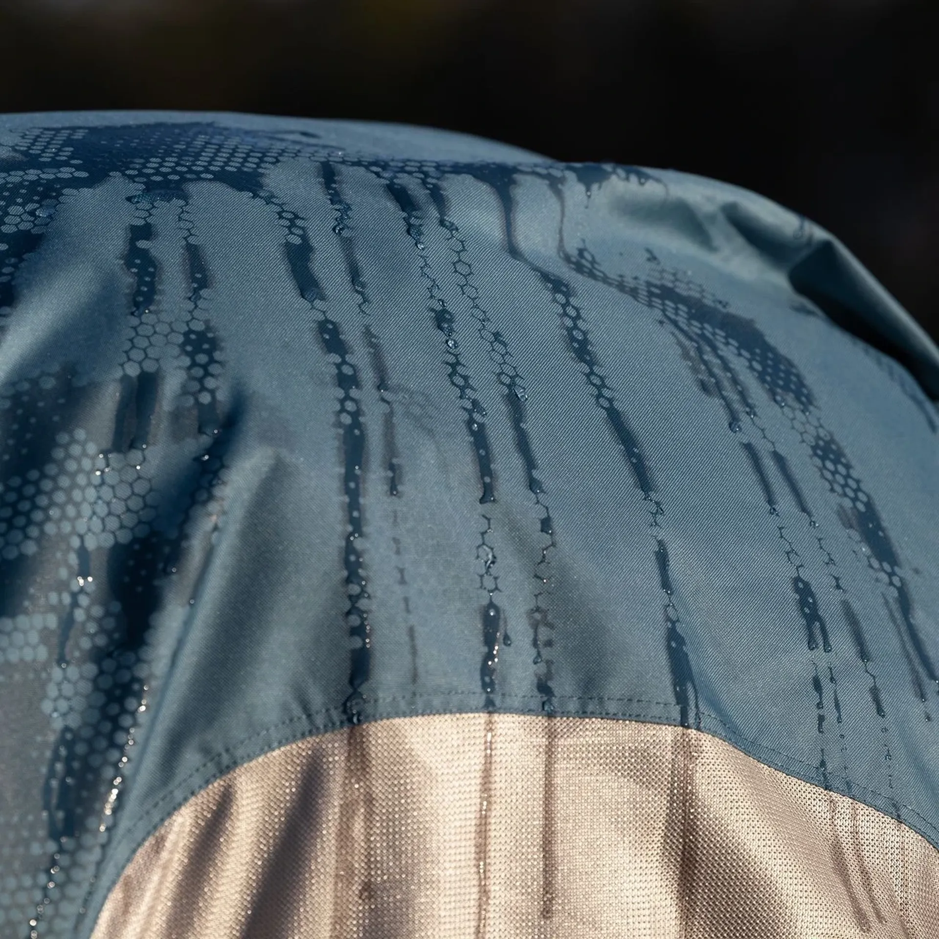 The LeMieux Arika Camo Shower-Tek Waterproof Fly Rug is an innovative hybrid rug ideal for unpredictable weather conditions. It features a water-reactive camo print that reveals when the rug gets wet and disappears when dry. A durable waterproof topline section protects the back, preventing rain scald and UV sun bleaching, while the lightweight micro mesh provides a barrier against flies and bugs and promotes airflow.