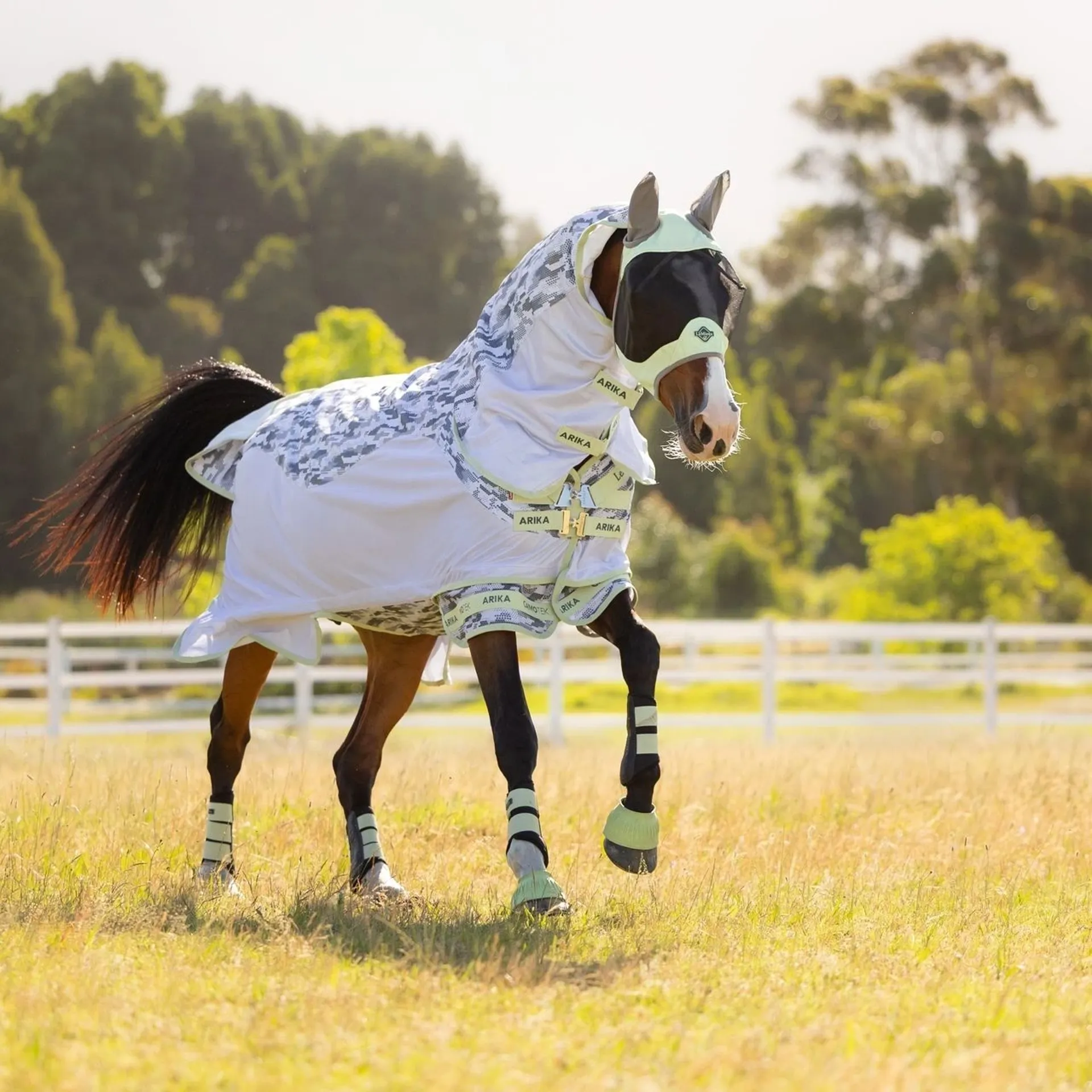 Question(s) answered about LeMieux Arika Camo-Tek Combo Neck Fly Rug - Macaron