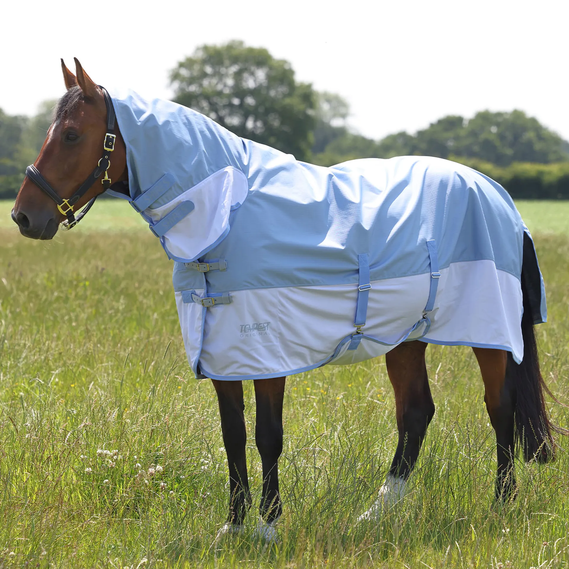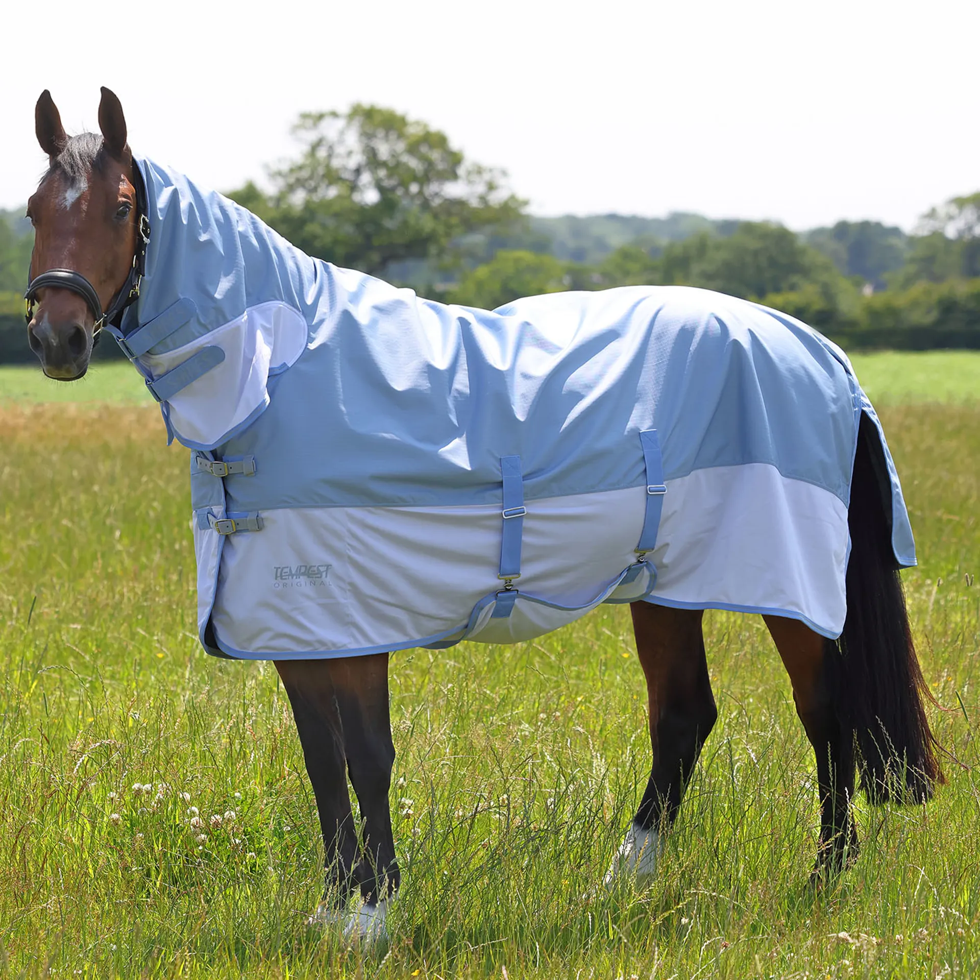 Question(s) answered about Shires Tempest Original Waterproof Combo Neck Fly Rug - Pale Blue