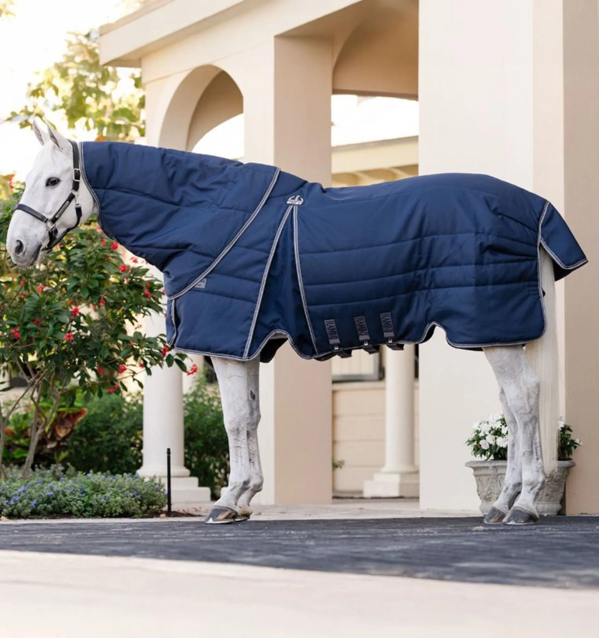 Question(s) answered about Rambo Optimo Plus 200g Medium Stable Rug - Navy/Thunderstorm Grey