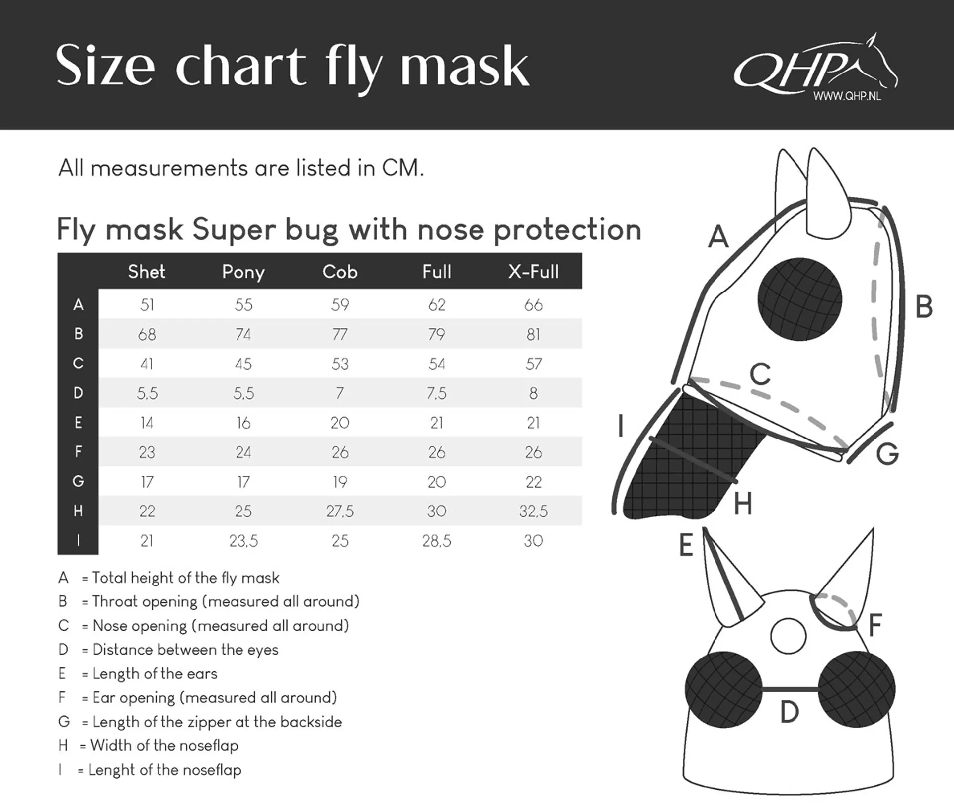 The QHP Super Bug Fly Mask with Nose Protection is designed to protect your horse from flies and other insects. This mask is crafted from a smooth, elastic fabric to offer high wearing comfort, while the front opening ensures the forelock remains free.