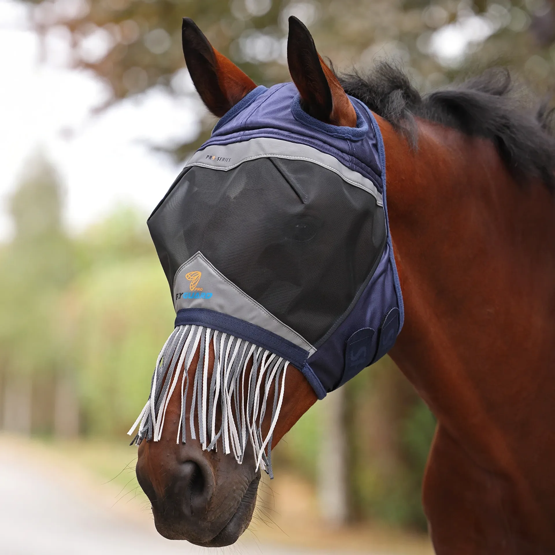 Question(s) asked regarding Shires FlyGuard Pro Fine Mesh Fly Mask with Nose Fringe - Navy