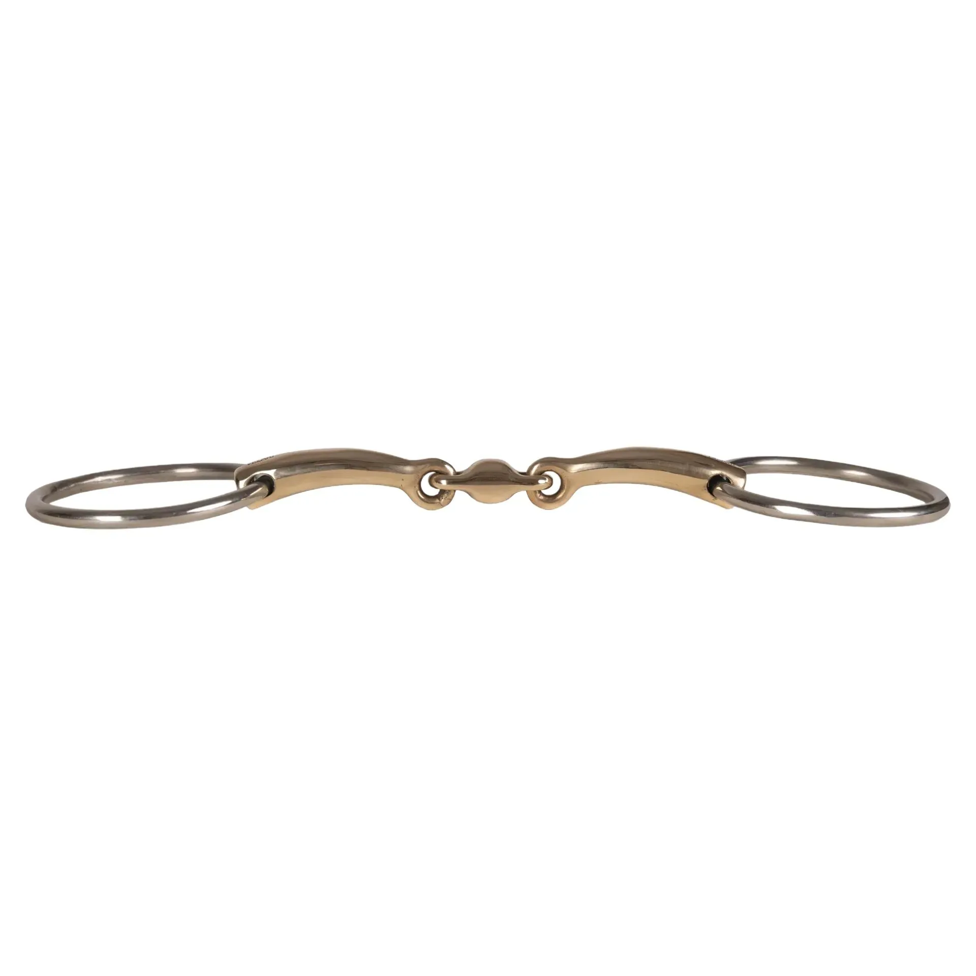 Designed for refined communication, the Velari Sweet Copper Double Jointed Loose Ring Snaffle Bit encourages steady acceptance and salivation for a consistent connection.