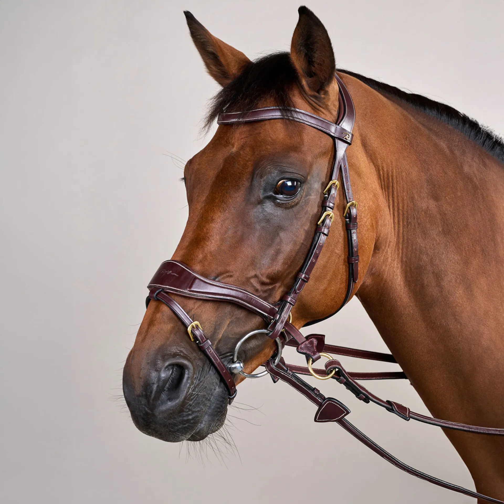 • Two D-buckles on the noseband for direct rein attachment or Cross Pull configuration