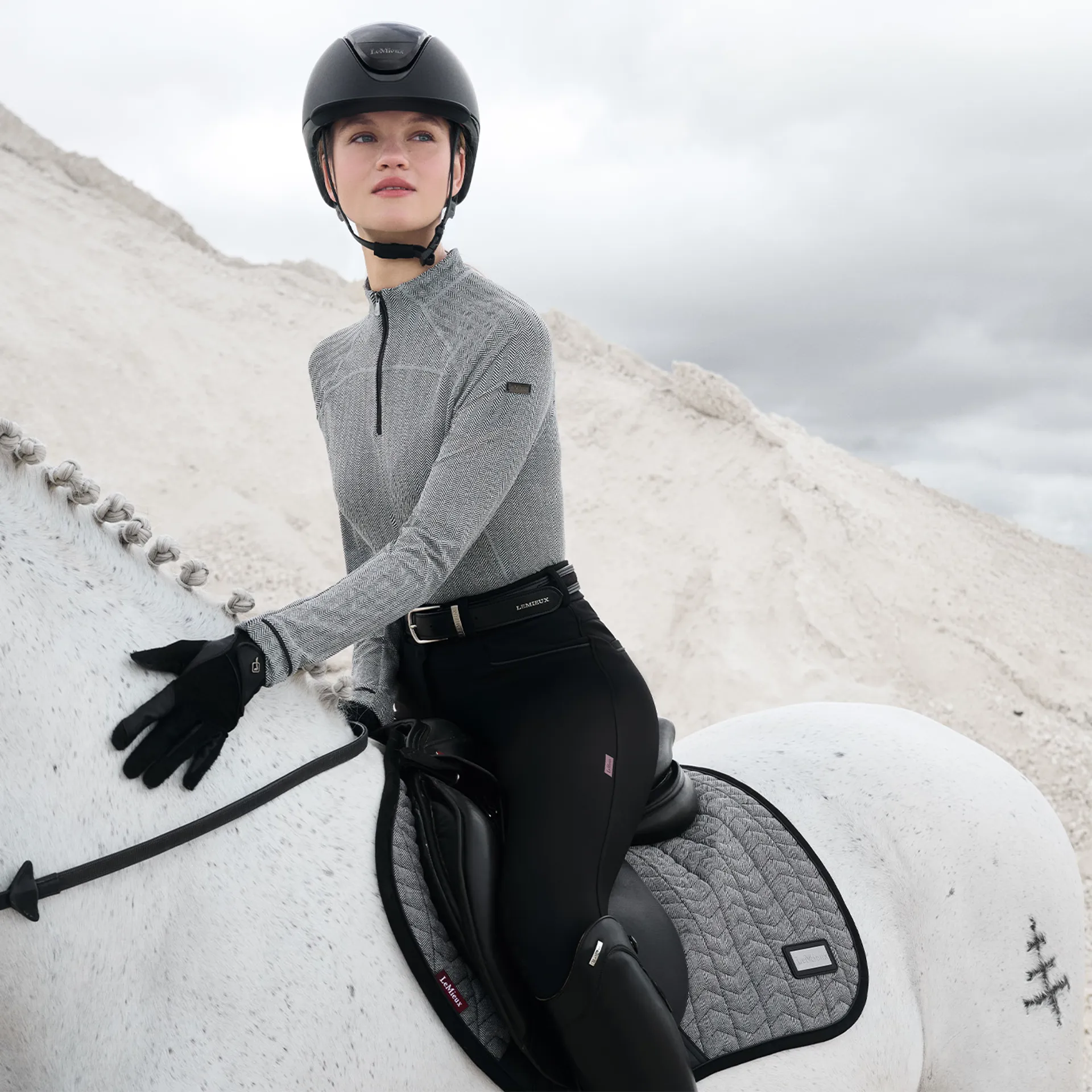 Crafted in premium houndstooth fabric with patent PU piping, a gunmetal badge, and bamboo lining, the LeMieux Aspen Close Contact Saddlecloth combines elegance, comfort, and durability for both horse and rider.