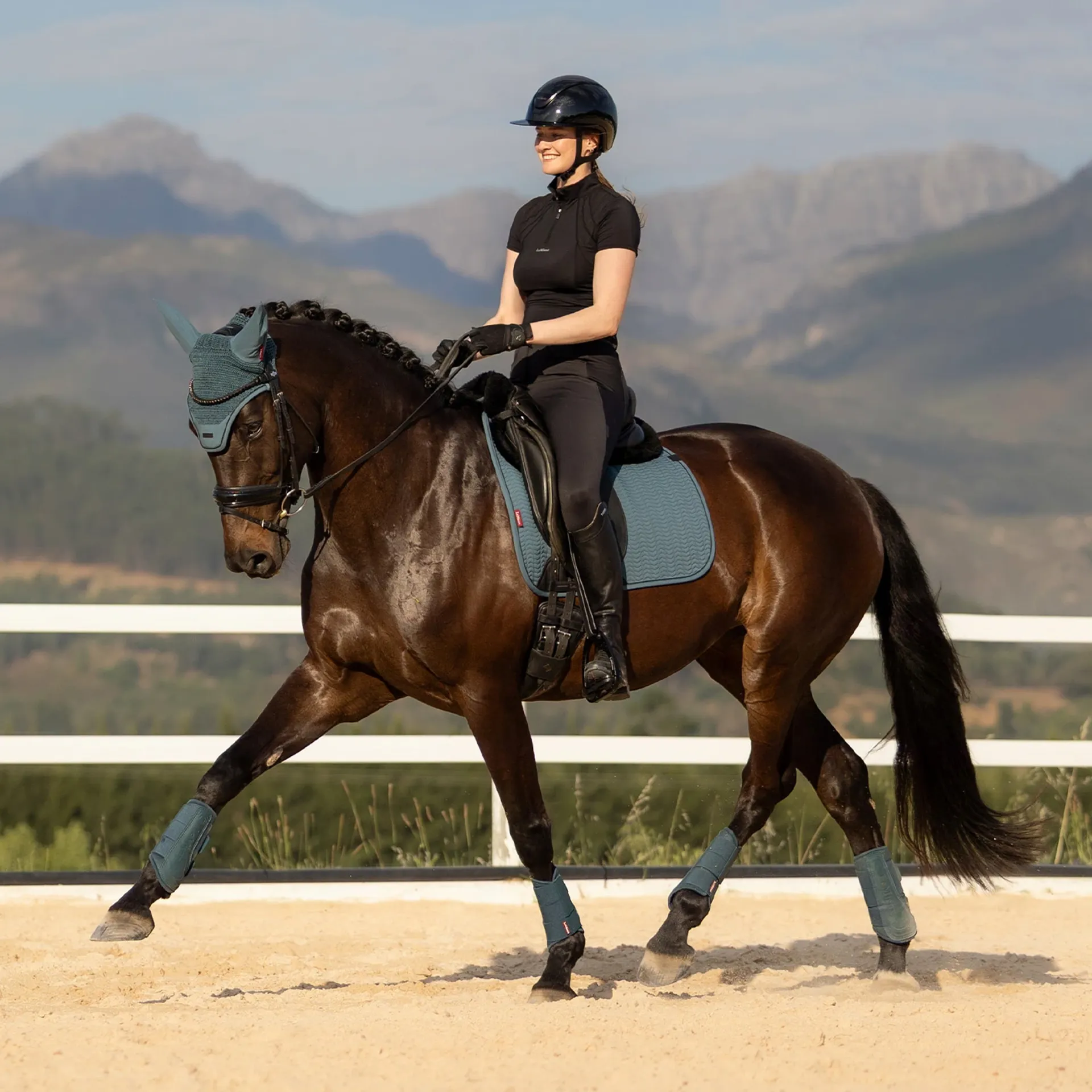 Designed with functionality and style in mind, the rubberized piping adds a sporty aesthetic, and the faux leather girth protection area ensures long-lasting durability. The elasticated saddle straps, carefully designed to connect to the D-ring, allow extra space for training accessories, while the hidden girth loop channels enable precise girth placement. Finished with a LeMieux branded faux leather tab, this saddlecloth is the epitome of technical performance and luxury.