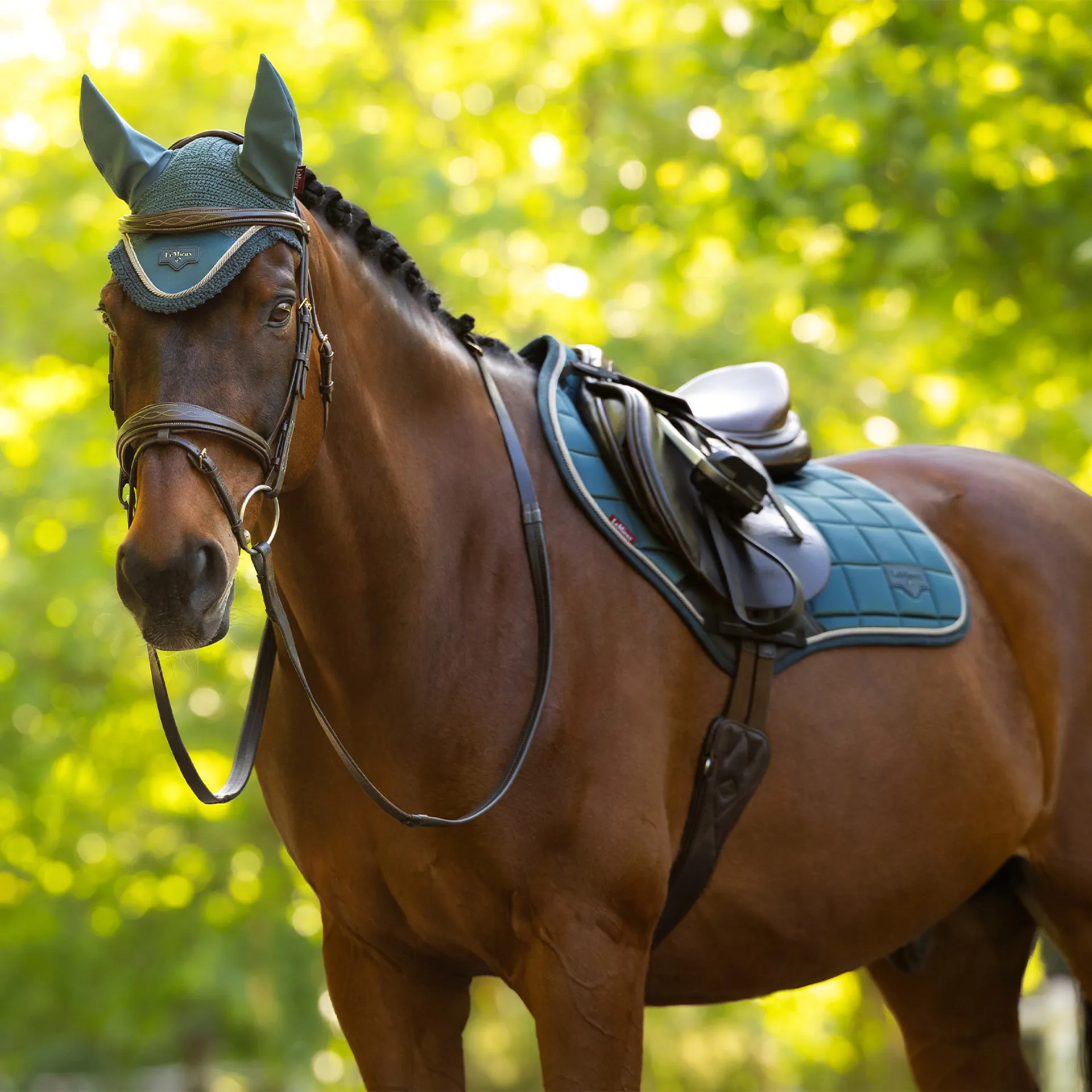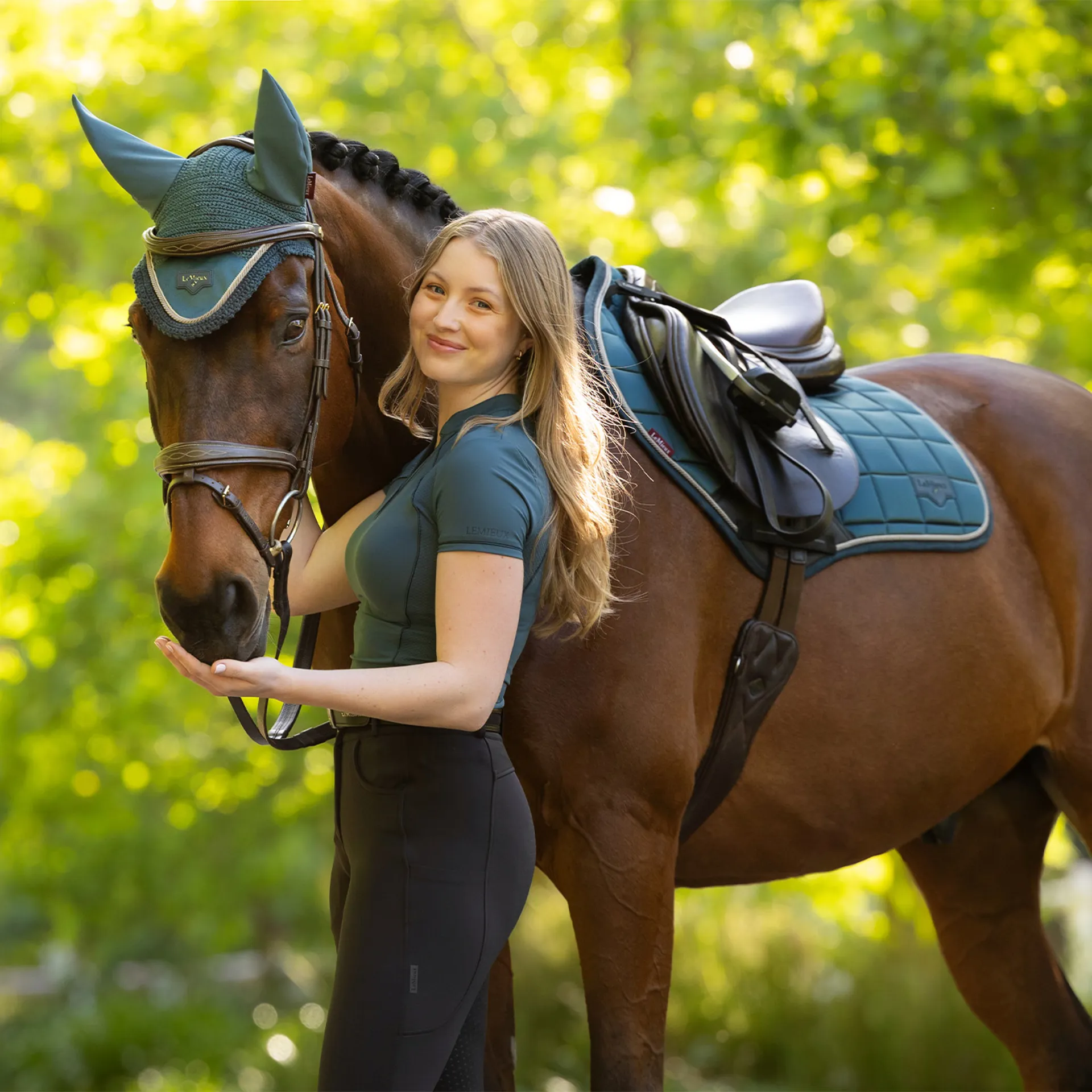 • Metal LeMieux logo badge on leather mount adds a stylish touch