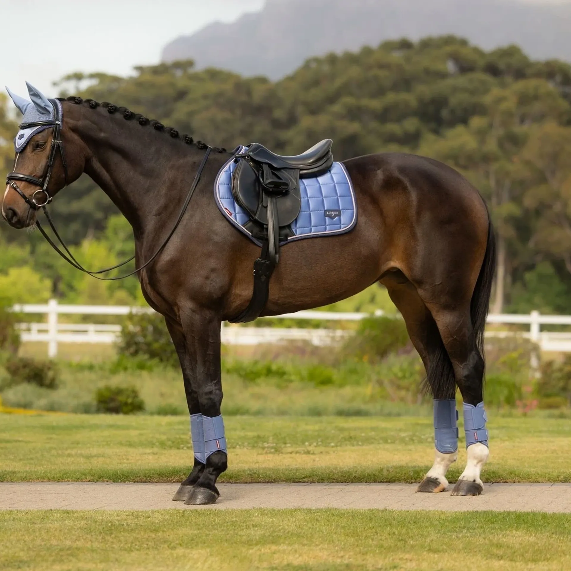 • Metal LeMieux logo badge on leather mount adds a stylish touch
