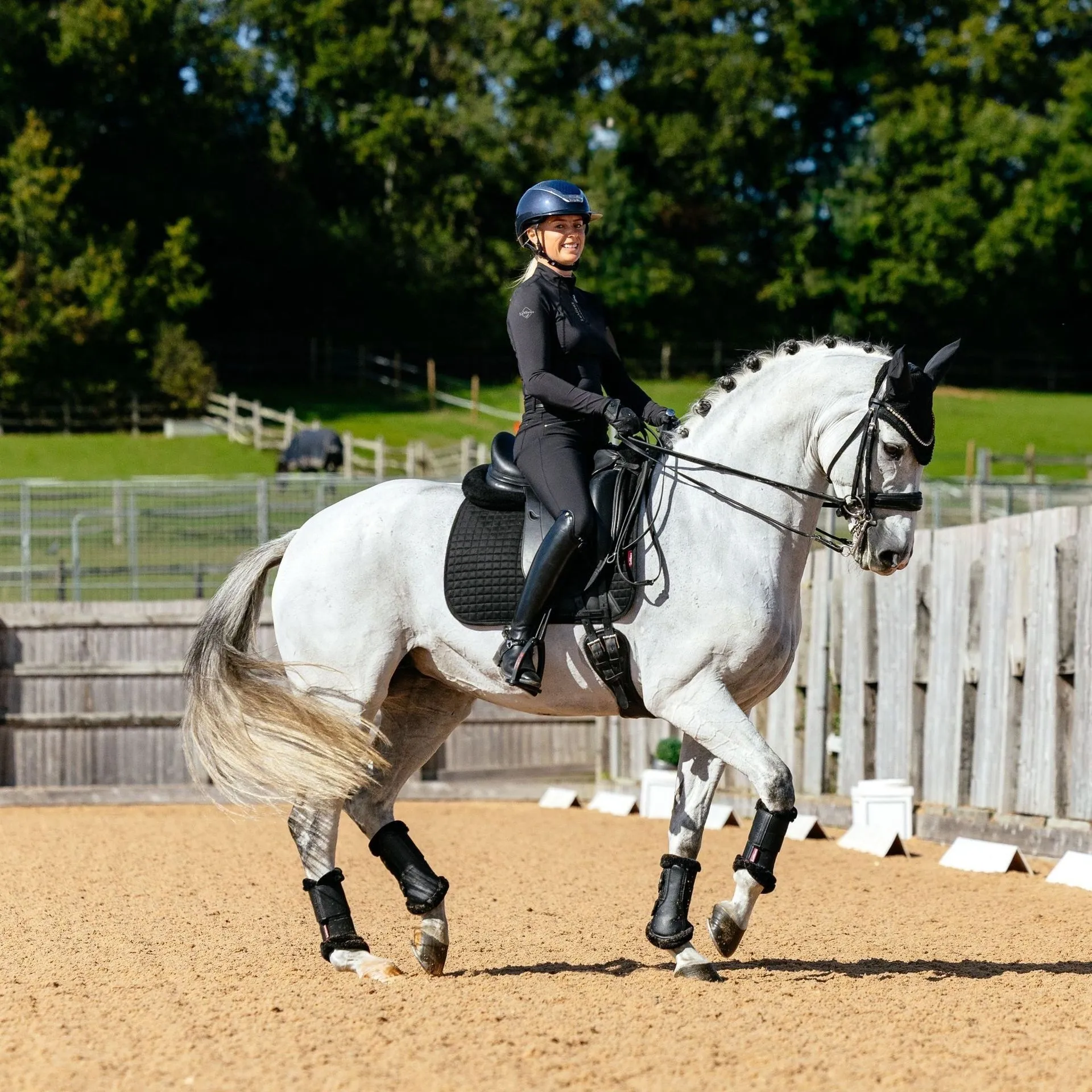 Designed to fit a wide range of dressage saddles with its high wither, elasticated D-Ring tabs & signature girth protection area, the LeMieux ProSport Suede Dressage Square offers exceptional comfort and style.