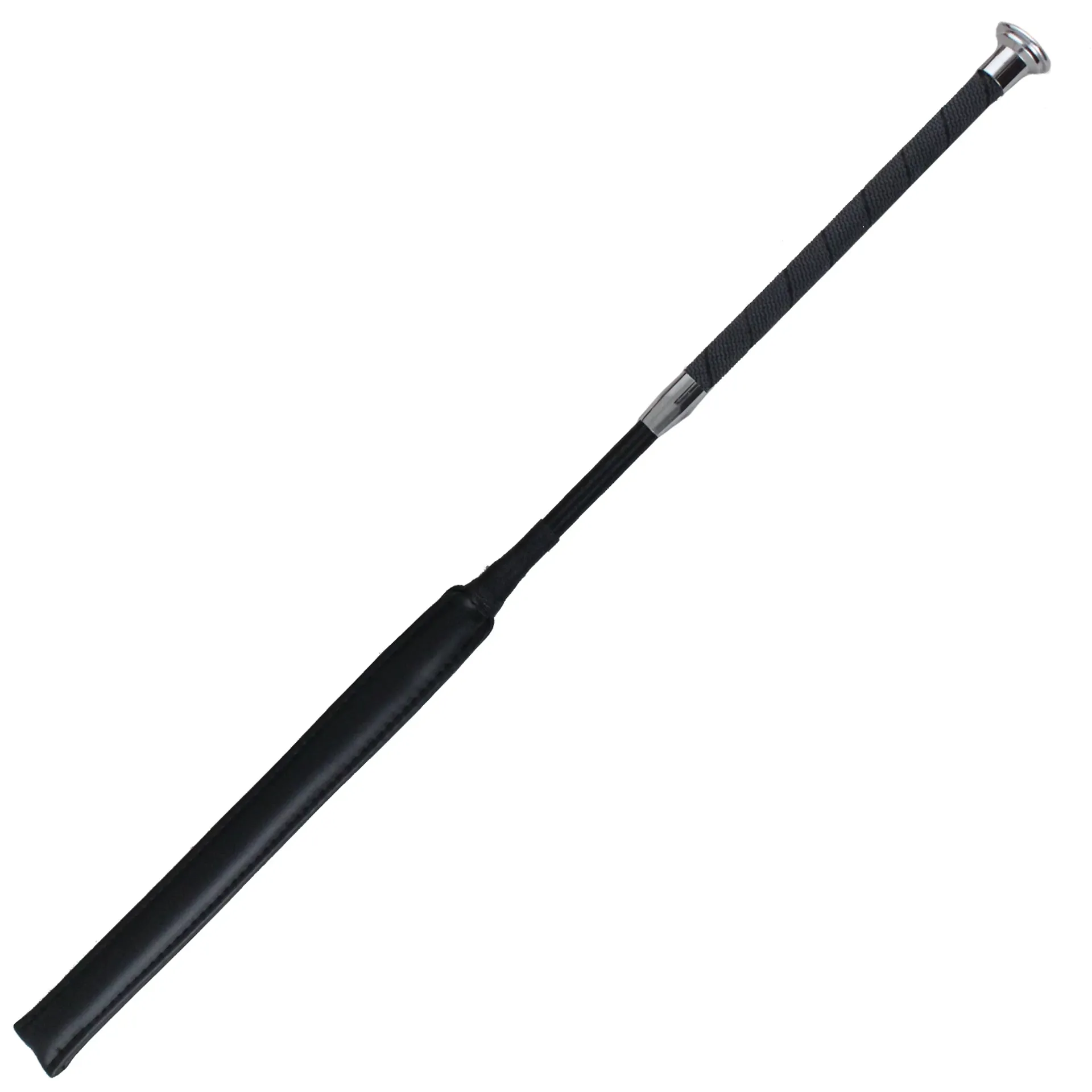 The Pro Showjumping Bat is designed for superior control and comfort, combining a non-slip textured TPR rubber grip with a shock-absorbing padded strike area. This essential tool for riders is fully compliant with British Showjumping, British Eventing, and Pony Club regulations.